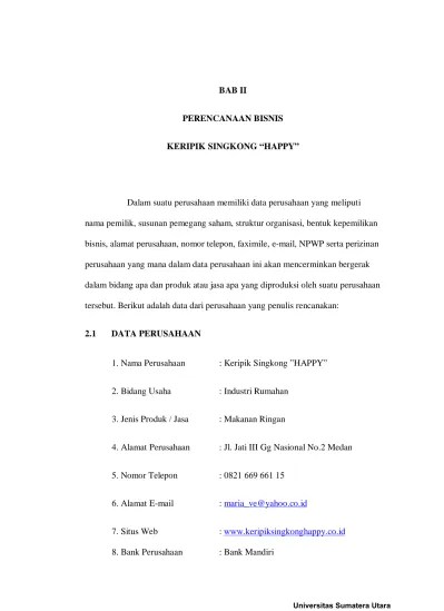 Keripik pisang yang mengalami penurunan usaha dan berdampak pada omset penjualan. Contoh job description · mengunjungi pelanggan potensial untuk bisnis baru · bernegosiasi tentang detail agreement dan close sales · mengumpulkan . 4.2job description pada struktur organisasi. Telp :struktur organisasi dan job description. Perusahaan kripik tempe "abadi" didirikan pada tahun 1970 oleh bapak h.